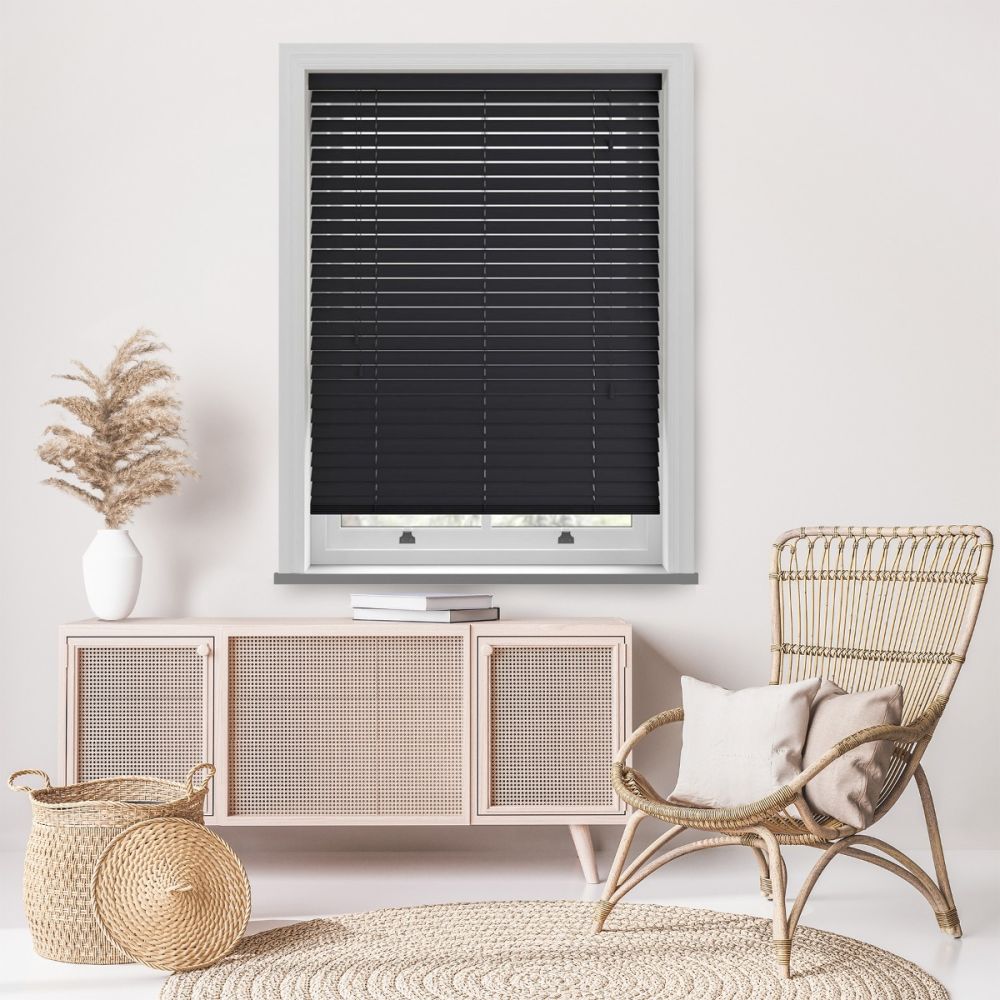 Our wooden and faux wood blinds feature a sturdy, color-coded headrail matching the color of your slats. For blinds with 50mm slats, the headrail dimensions are 42mm in height and 59mm in depth.