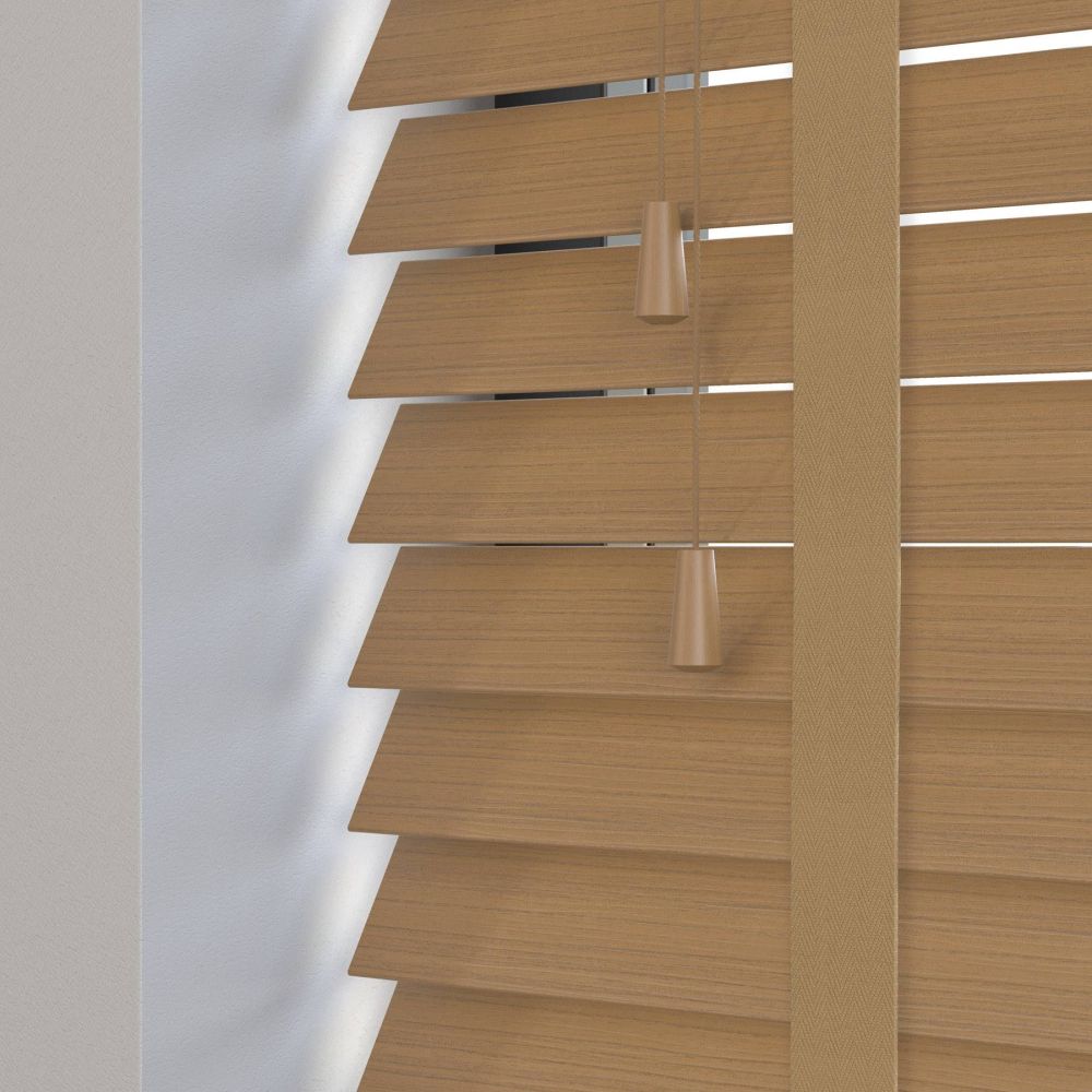 Our wooden and faux wood blinds feature a sturdy, color-coded headrail matching the color of your slats. For blinds with 50mm slats, the headrail dimensions are 42mm in height and 59mm in depth.