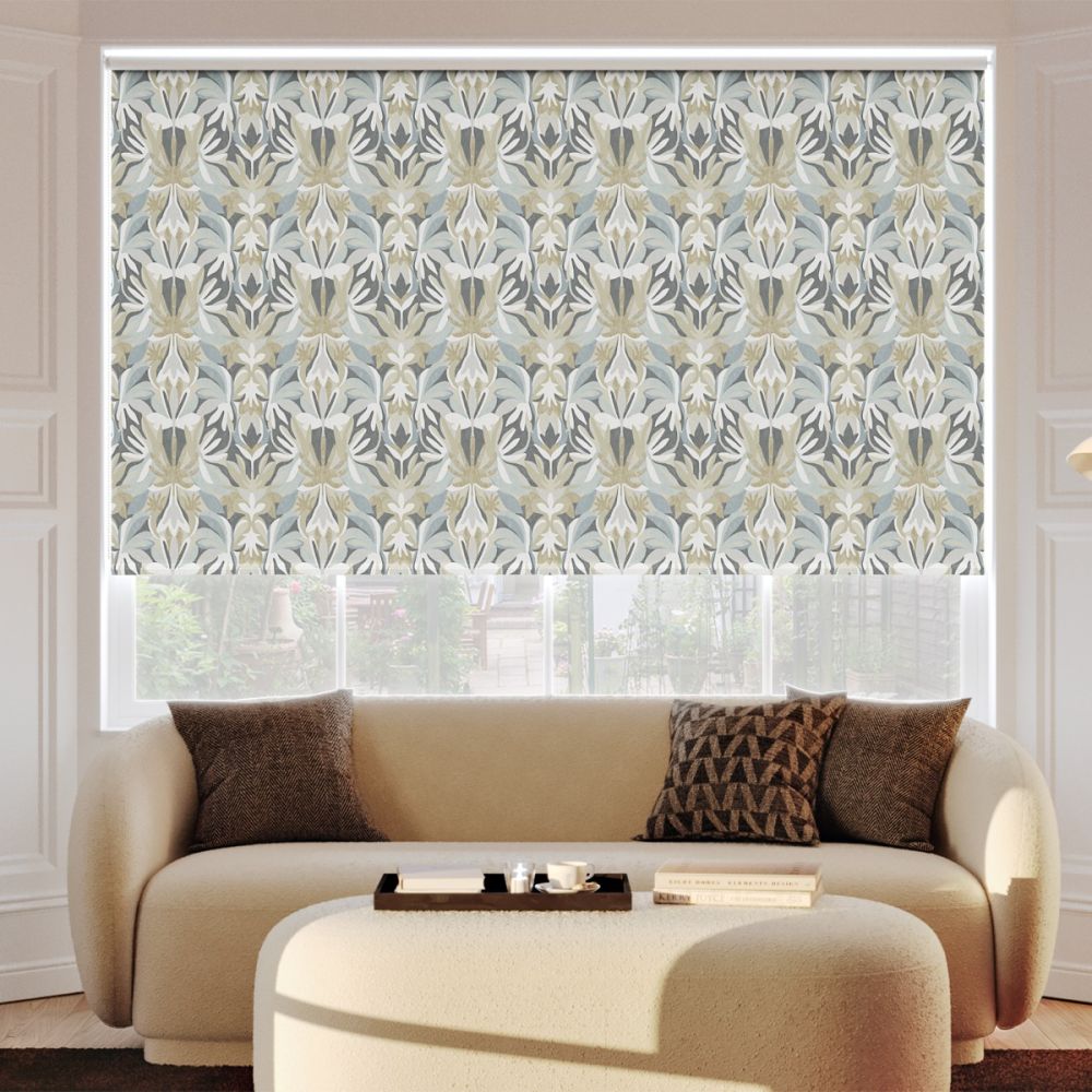 One of Harlequin’s signature designs, Melora’s bold damask pattern is perfect for any modern interior. The more subdued Grey colourway softens the palette with losing any of the design’s impact, with hints of green and blue adding a subtle focal point. Manufactured for John Lewis in our blackout fabric, this roller blind offers unrivalled light control.