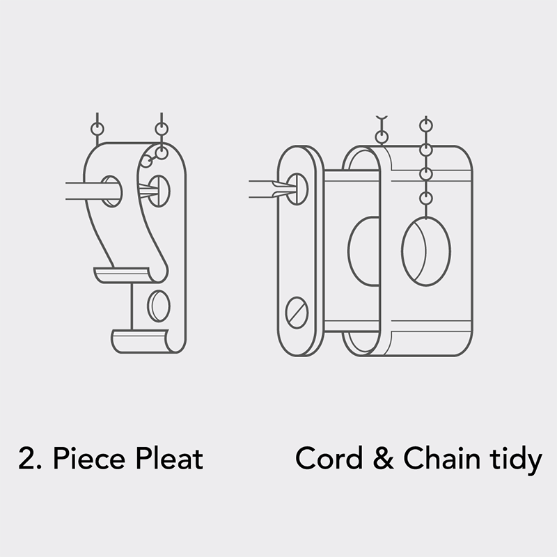 To stop the chains tangling use the chain clip to direct the top (front) blind away from the lower blind chain.
