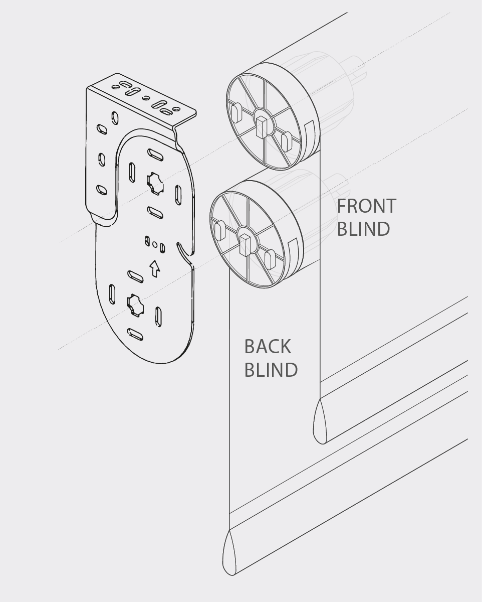 The Front blind is always the top blind, the back blind is the lower blind. Ensure brackets are positioned as shown with curved edge to the bottom