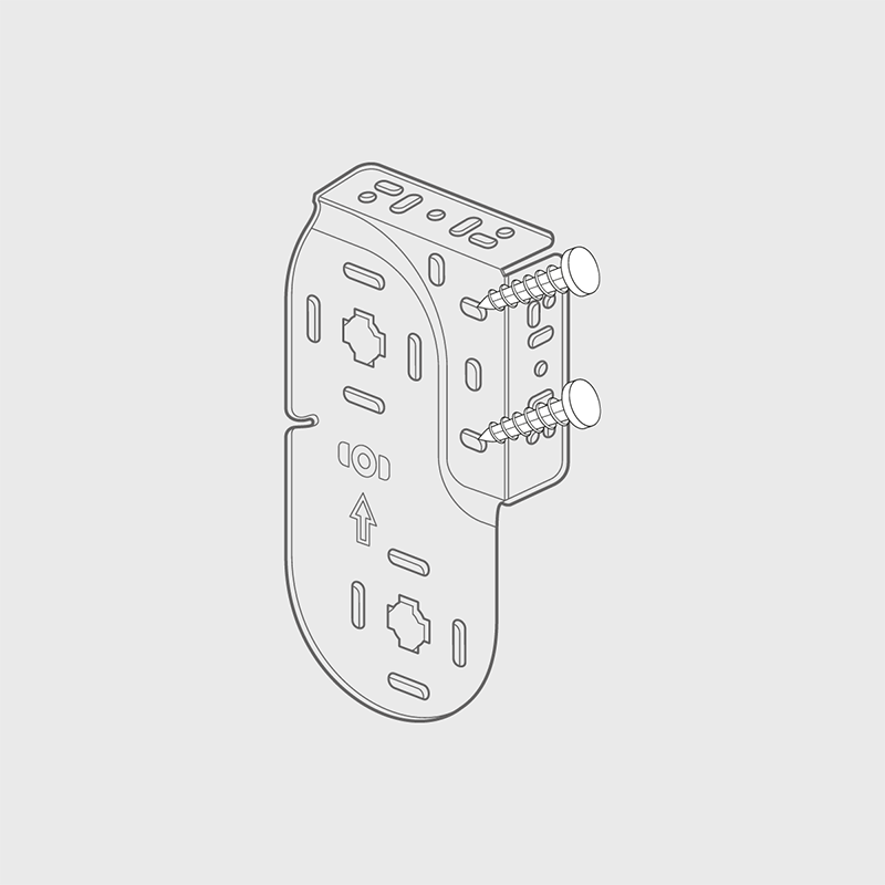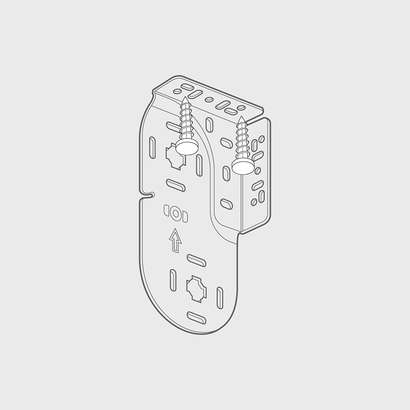For a side fixing, position the brackets allowing for obstructions like handles that protrude into the recess area. Hold each bracket into place and mark the hole positions. Fit each bracket using suitable screws. Please ensure fixings are suitable for the wall/surface to which you are mounting the brackets.