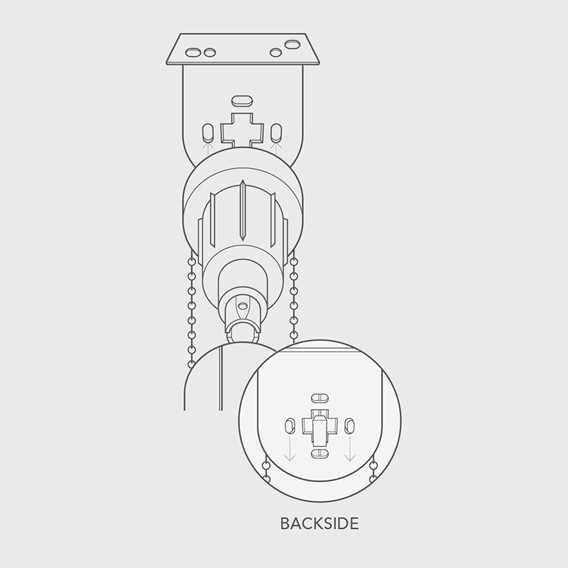 Holding the fully-wound blind, insert the idle pin end into the bracket as shown