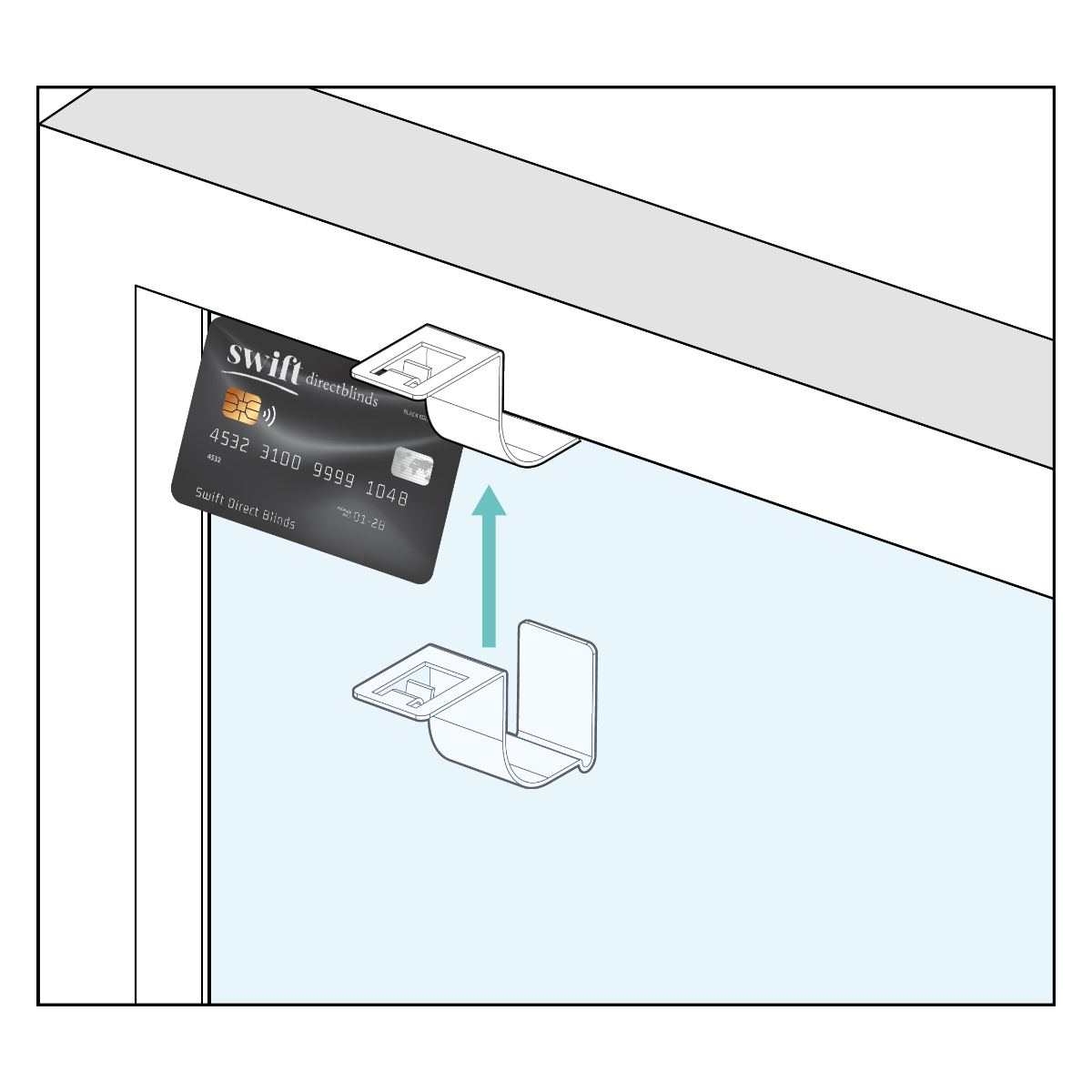 The brackets slide in between the glass and the rubber seal. 2 brackets are inserted at the top of the window and 2 at the bottom of the window. Using a credit card line the brackets up with the edge of the card and slide the brackets into place.