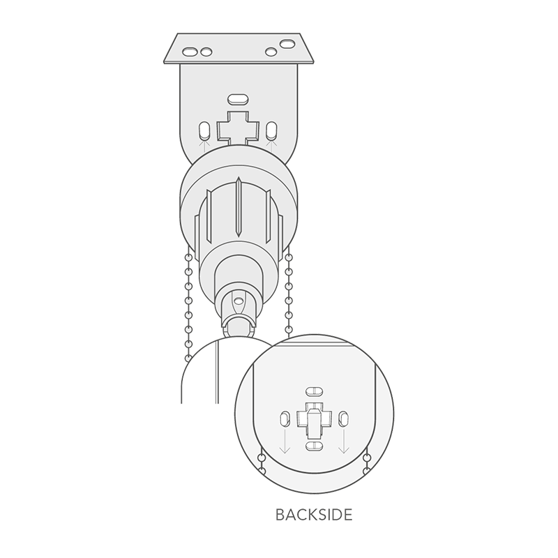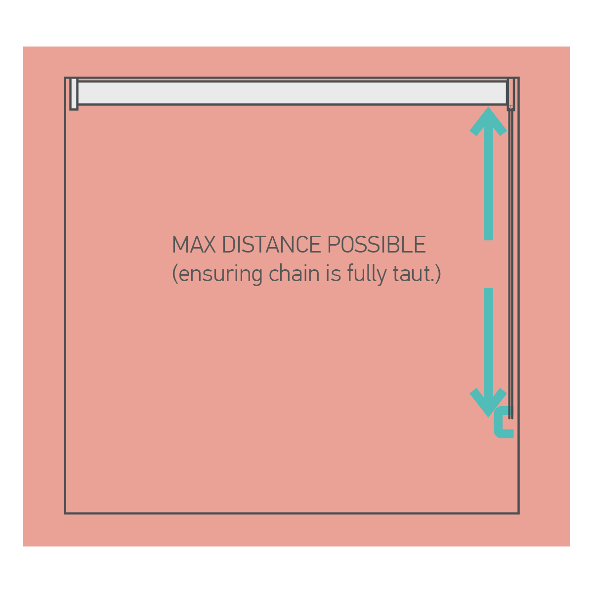 Please Note: To prevent the chain from slacking, the child safety device must be fixed at the maximum distance possible from the control mechanism. The chain must be taut.