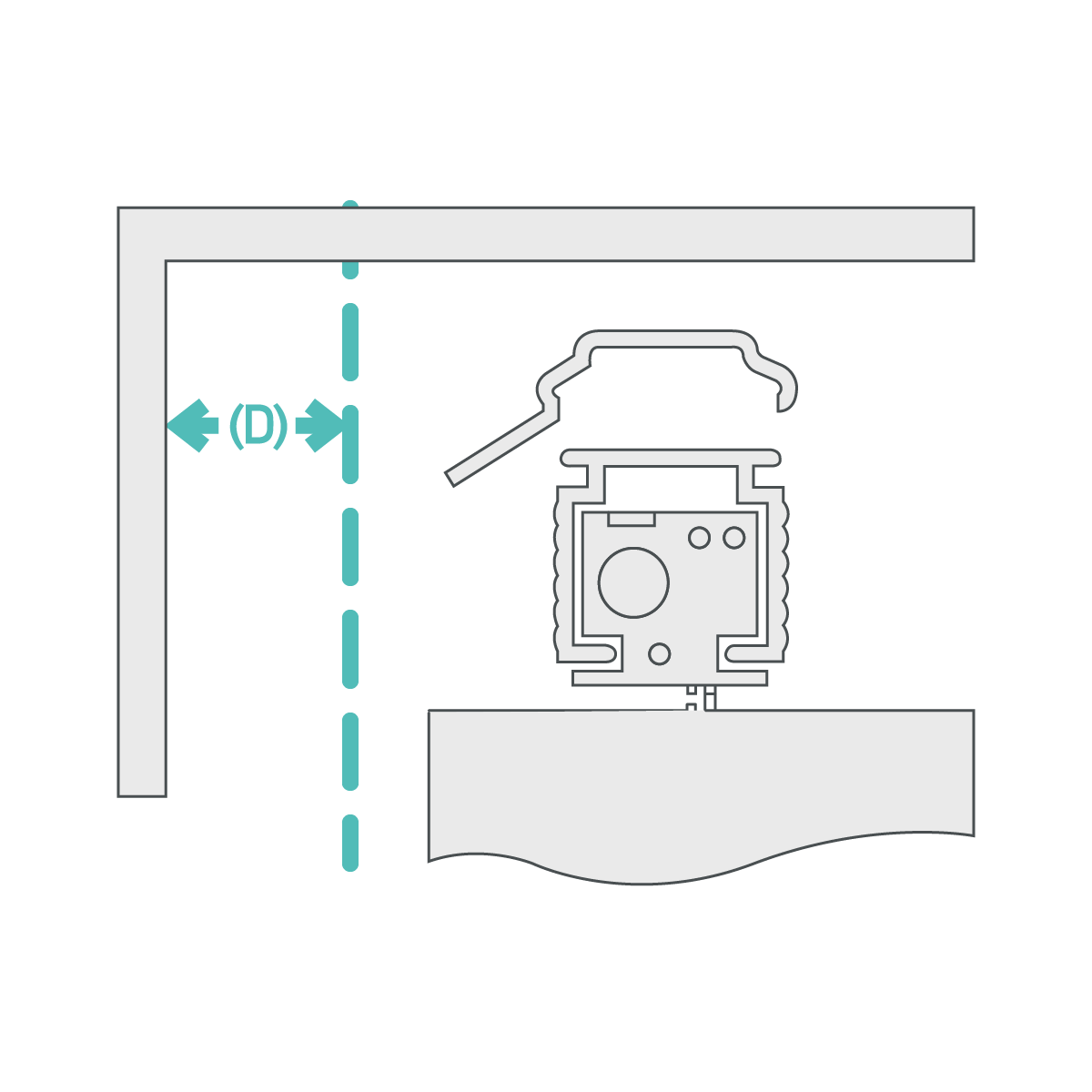 If you're attaching the bracket to the underside of the window recess, measure and mark the distance (D), accounting for any obstructions such as handles that protrude into the recess. Position the brackets approximately 5cm from each end of where the headrail will be placed. If more than two brackets are provided, install the additional brackets evenly spaced along the length of the blind. Ensure that the fixings are appropriate for the wall or surface where the brackets are being mounted.