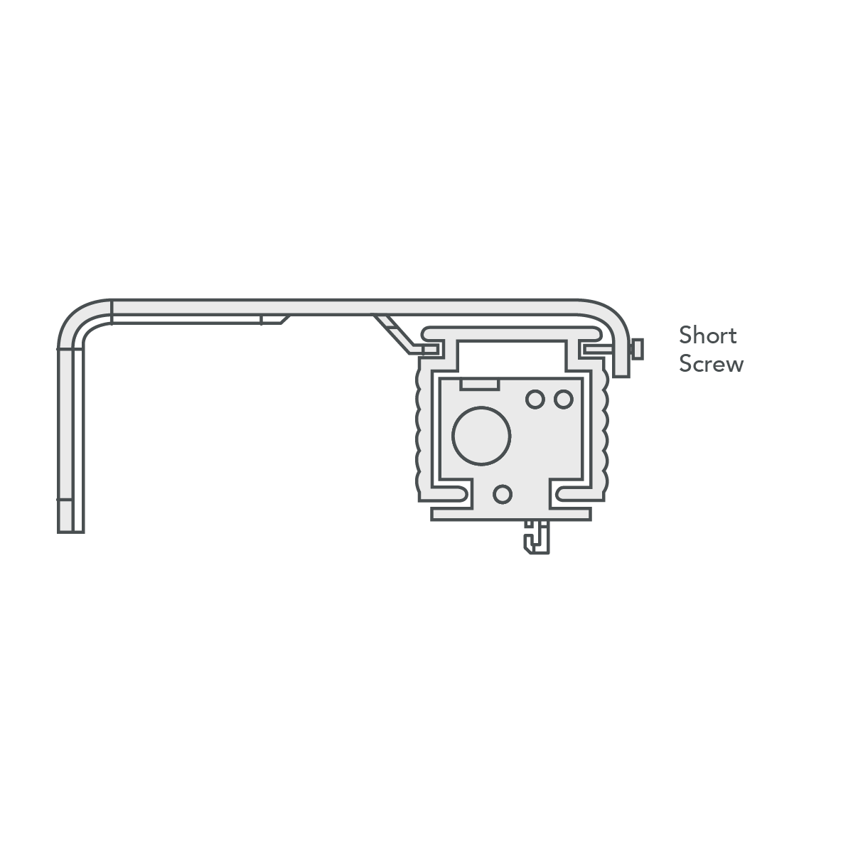 Hook the back of the headrail into the bracket and rotate it into place. Secure the headrail by tightening the short screw at the front of the bracket.