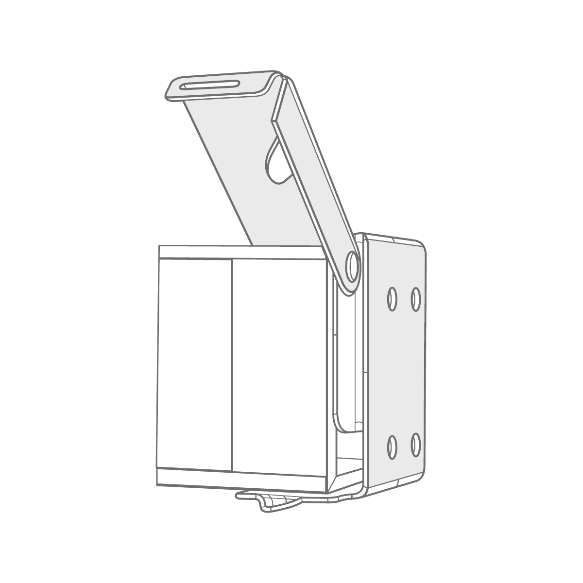 For wider blinds a central support bracket is necessary. Before installation, align the top of the central bracket with the top of the mounting bracket. Install the bracket with the larger flap ('gate') facing upward and evenly spaced across the width of the headrail. Ensure that the central bracket is positioned away from any central cords or tapes that run down the slats.