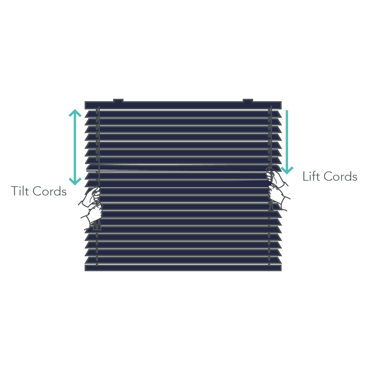 To tilt the blind, gently pull the tilt cord tassel to adjust the slats to your desired open or closed position. For longer-lasting blinds, always tilt the slats to a horizontal position before lifting or lowering them.
