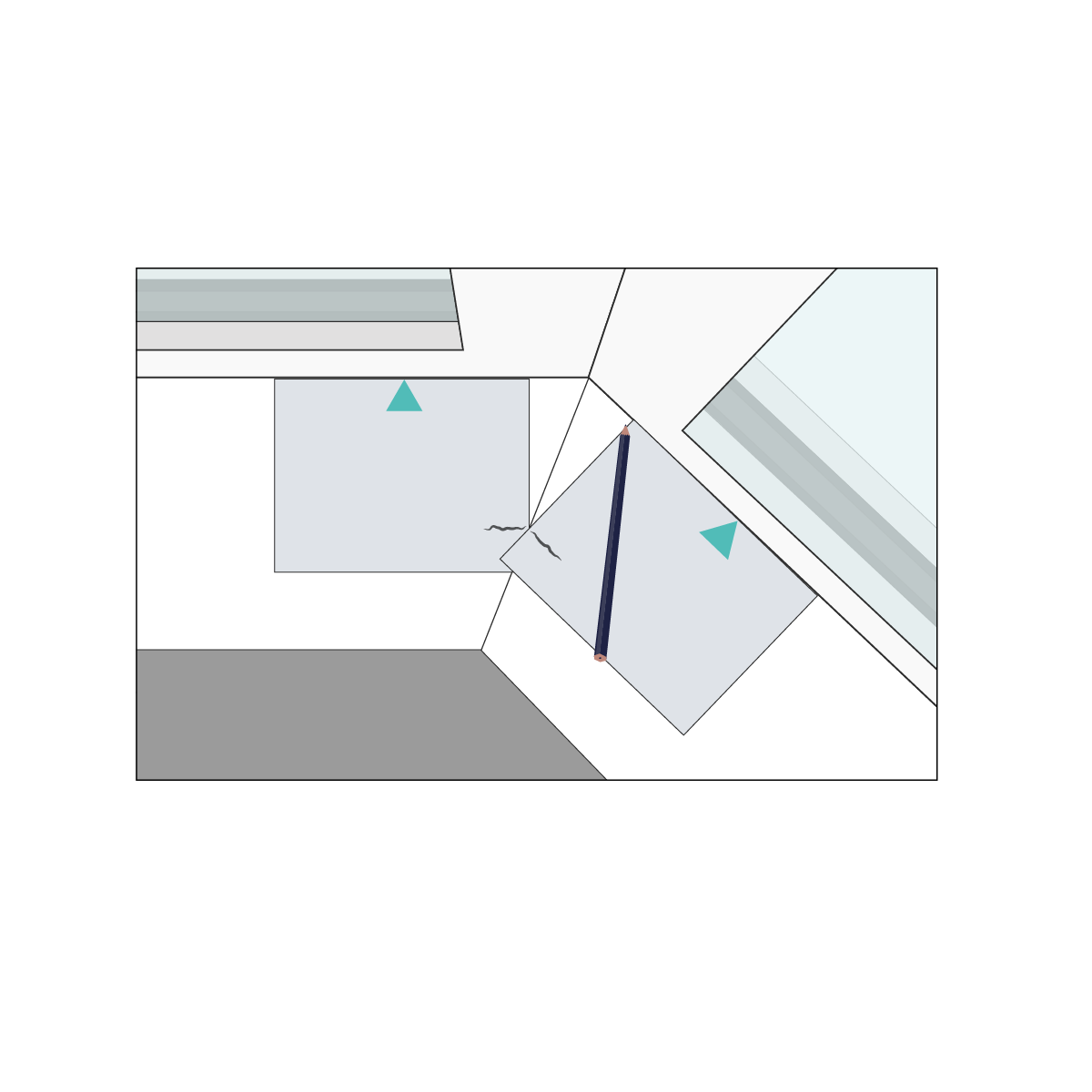 Grab your pencil again and mark on the window sill the point where the lines meet. Repeat this step on each intersection of your bay window.