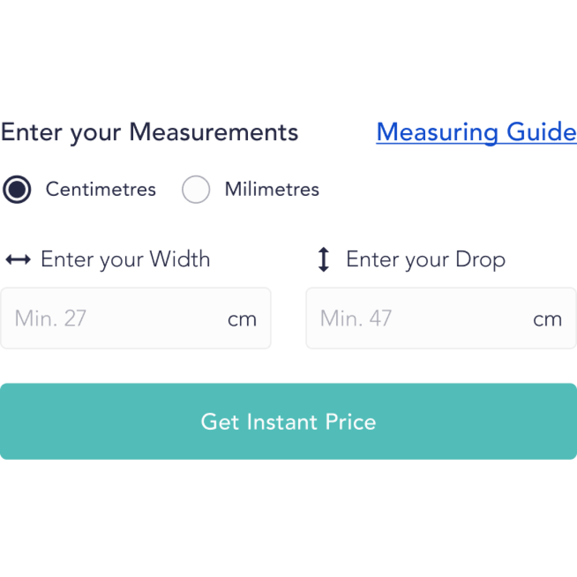 Go to your chosen product, enter your width and drop measurements.