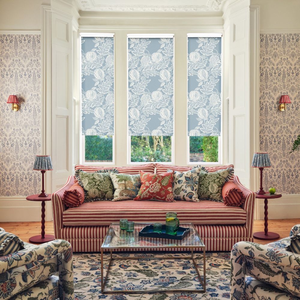 JL x Sanderson Cantaloupe, Menai Blue Roller Blind