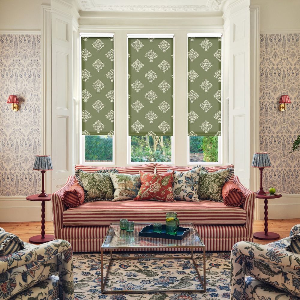 JL x Sanderson Ottoman Flowers, Forest Green Roller Blind