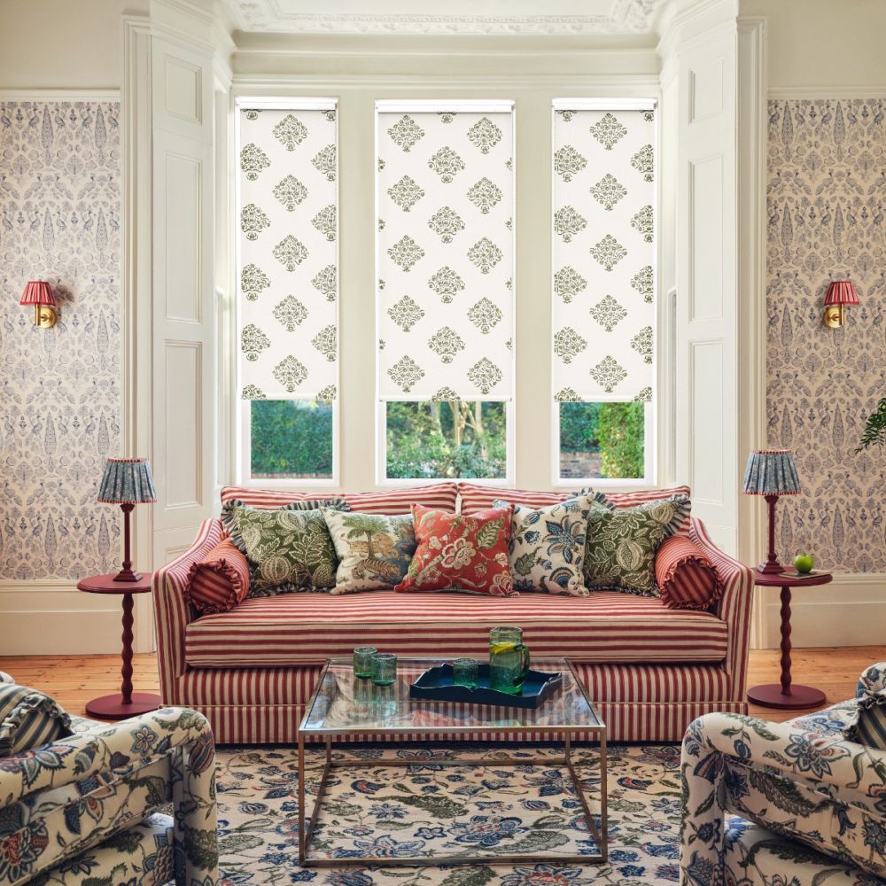 This elegant heritage roller blind combines soft olive tones with bold patterns, making it a standout choice for vintage interiors or rooms with a curated, eclectic edge. As part of the exclusive John Lewis and Sanderson collaboration, it celebrates design legacy with everyday functionality.