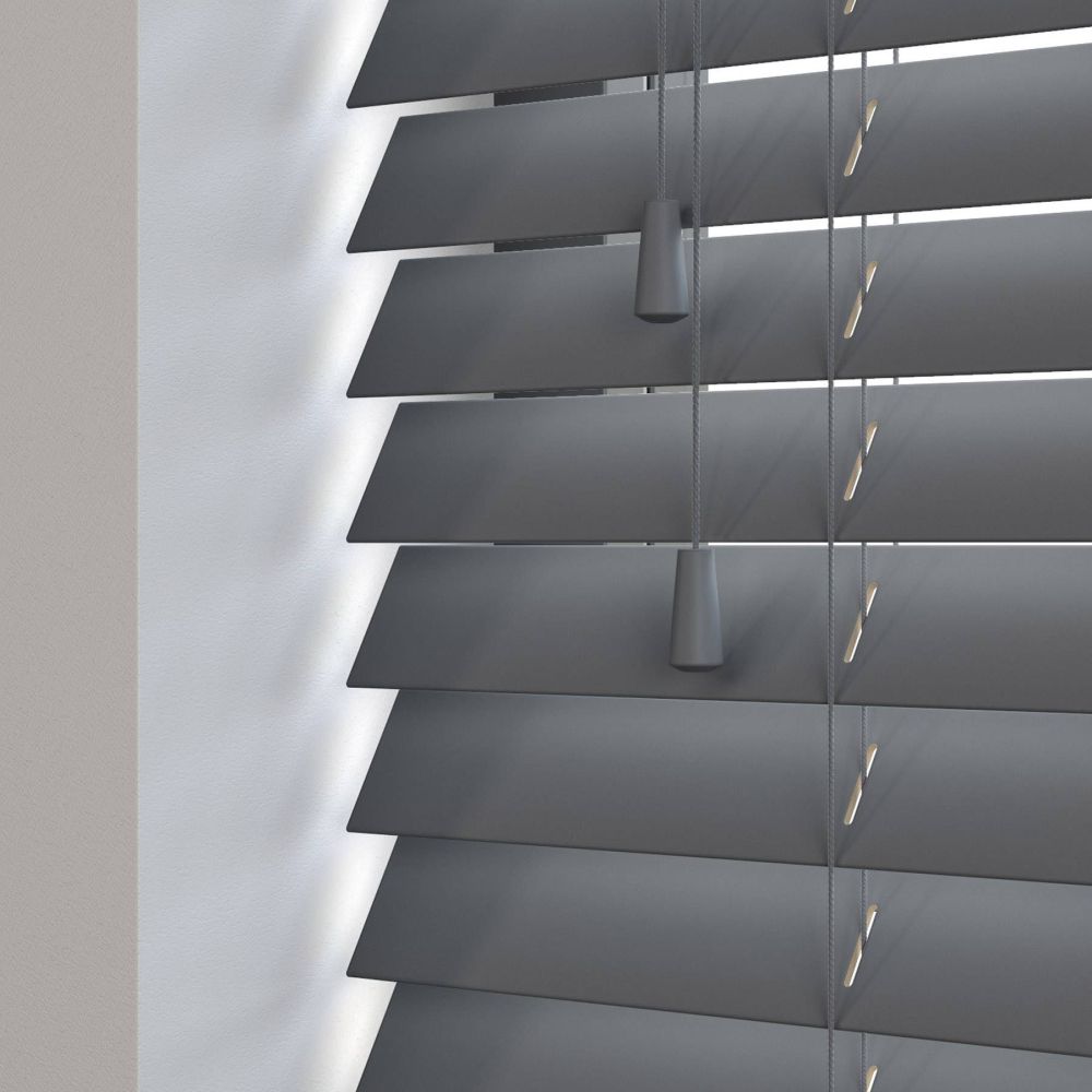 Our wooden and faux wood blinds feature a sturdy, color-coded headrail matching the color of your slats. For blinds with 50mm slats, the headrail dimensions are 42mm in height and 59mm in depth.