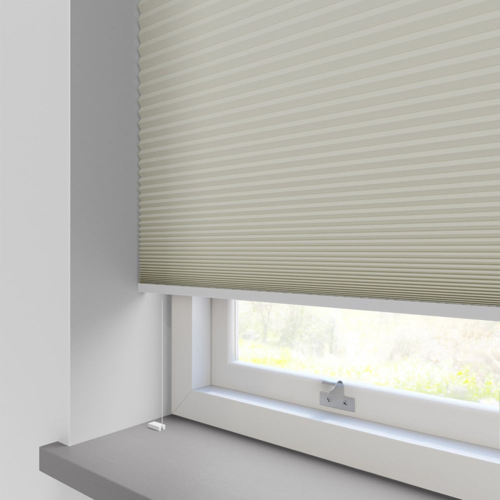 These pleated blinds are operated using a handle. Standard pleated blinds with side guides come with one handle, while those wider than 1200mm are equipped with two handles. You can choose between the Top Down – Bottom Up or Bottom Up system for all our pleated blinds.