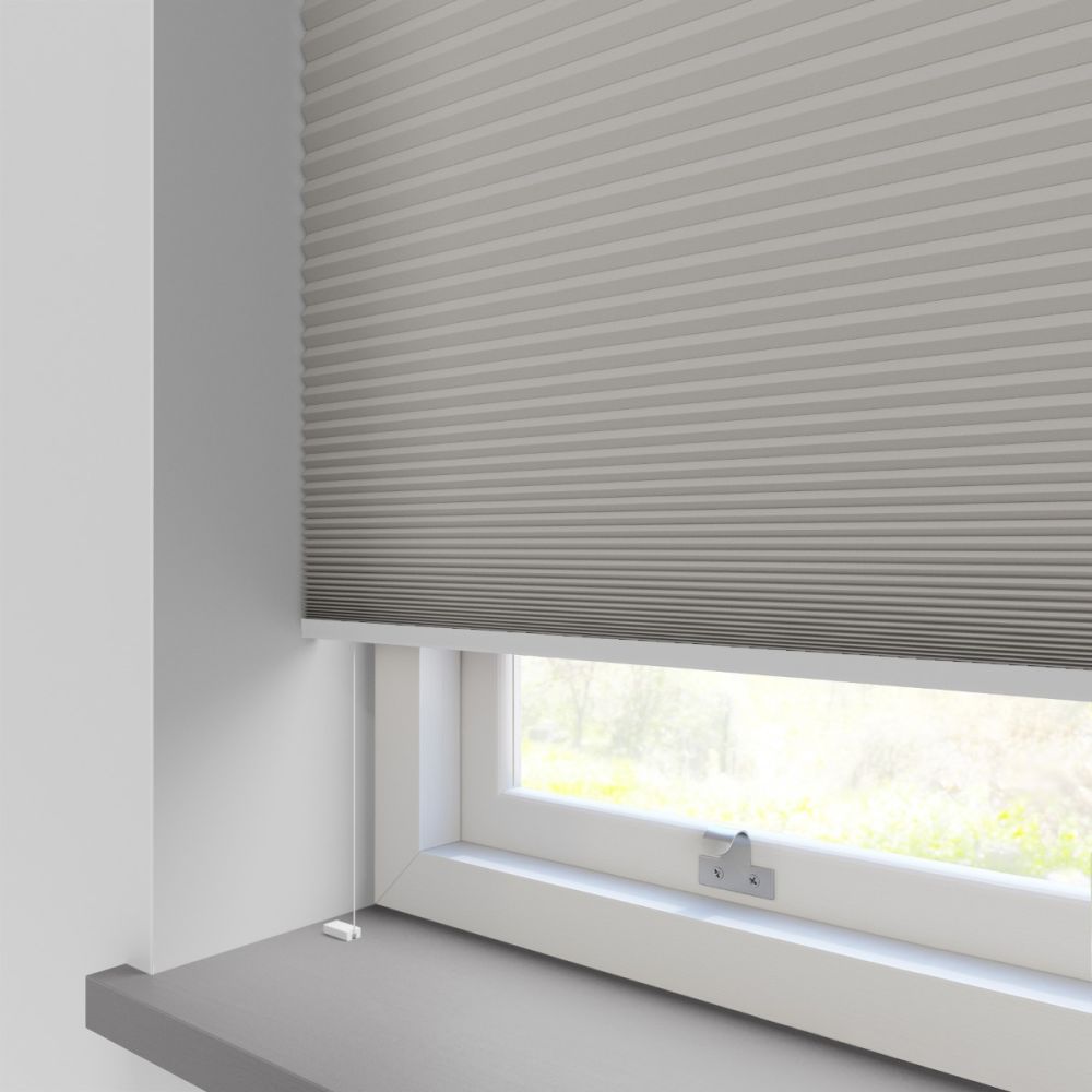 These pleated blinds are operated using a handle. Standard pleated blinds with side guides come with one handle, while those wider than 1200mm are equipped with two handles. You can choose between the Top Down – Bottom Up or Bottom Up system for all our pleated blinds.