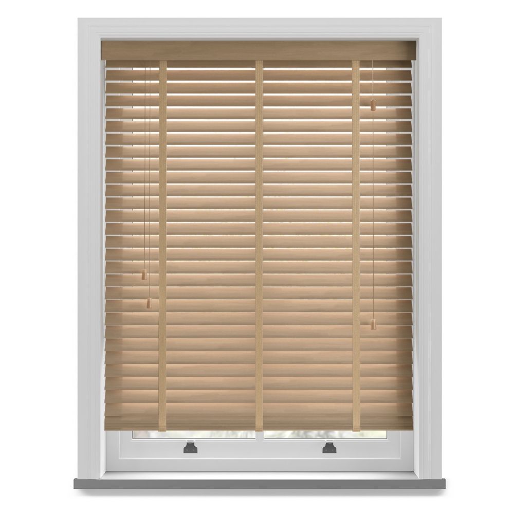 The Narra Oak Taped Real Wood Blind features a light, warm oak finish with a gently textured grain.