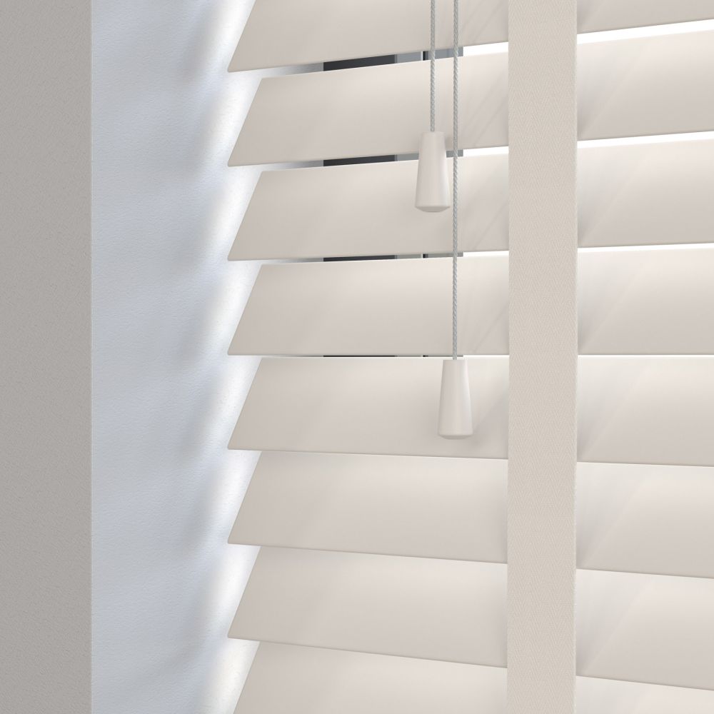 Our wooden and faux wood blinds feature a sturdy, color-coded headrail matching the color of your slats. For blinds with 50mm slats, the headrail dimensions are 42mm in height and 59mm in depth.