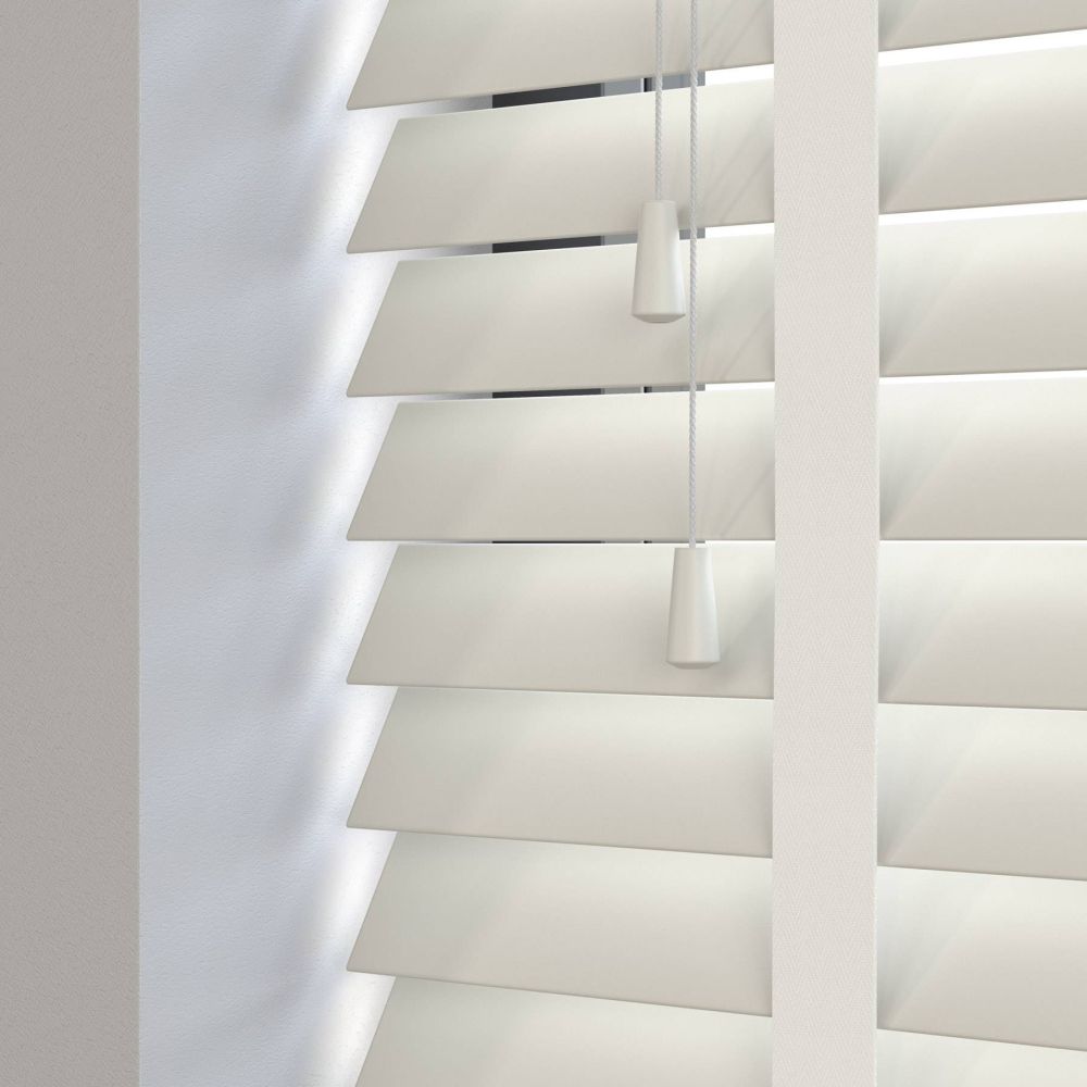Our wooden and faux wood blinds feature a sturdy, color-coded headrail matching the color of your slats. For blinds with 50mm slats, the headrail dimensions are 42mm in height and 59mm in depth.