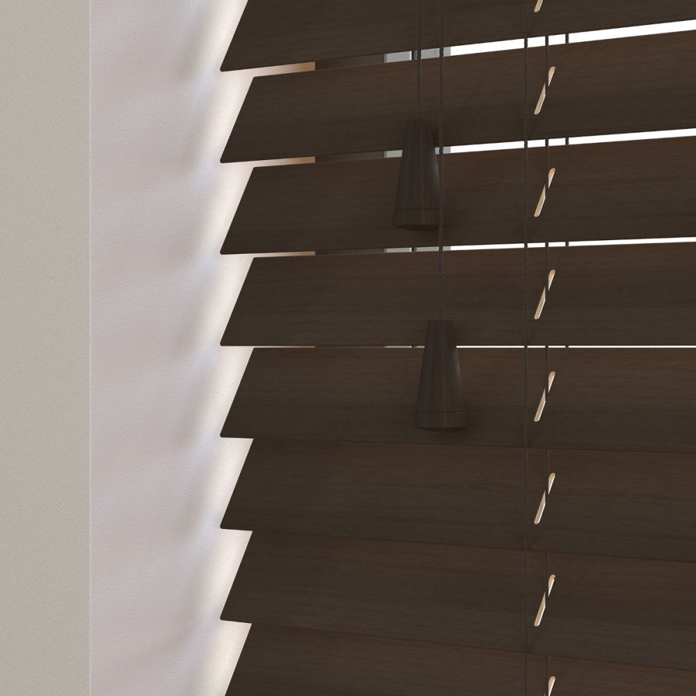Our wooden and faux wood blinds feature a sturdy, color-coded headrail matching the color of your slats. For blinds with 50mm slats, the headrail dimensions are 42mm in height and 59mm in depth.