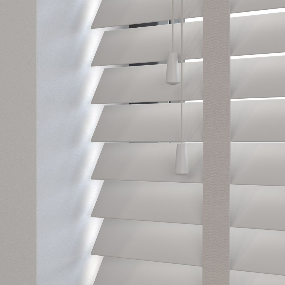 Our wooden and faux wood blinds feature a sturdy, color-coded headrail matching the color of your slats. For blinds with 50mm slats, the headrail dimensions are 42mm in height and 59mm in depth.